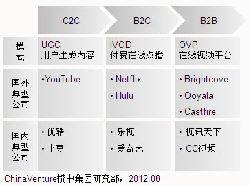 2012年2月,美国在线视频平台服务商Brightcove成功登陆纳斯达克市场,融资5500万美元;6月,其竞争对手Ooyala获得澳洲电信的3500万美元投资;7月,Castfire被网络视频营销公司Alphabird全资收购。诸多资本交易,都显示出境外资本市场对该行业的关注。ChinaVenture投中集团分析认为,在传统视频分享模式遭遇发展瓶颈的同时,个人用户之外的企业级用户对视频制作、传播、存储的需求依然强劲,云计算、支付渠道等相关基础设施建设的完善也给OVP行业带来了前所未有的发展机会,在线视频行业的B2B模式将迎来良好发展时机。