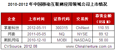 表2 2010-2012年中国移动互联网应用领域公司上市情况