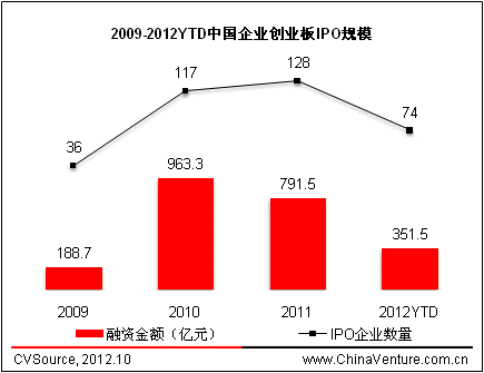 图1 2009-2012YTD中国企业创业板IPO规模
