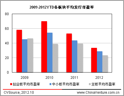 图3 2009-2012YTD各板块平均发行市盈率
