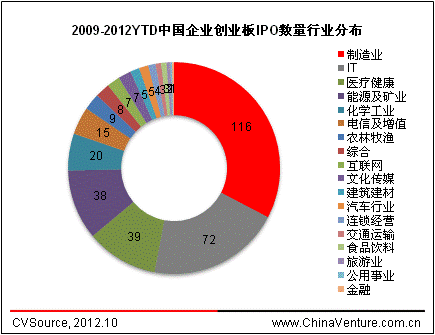 图4 2009-2012YTD中国企业创业板IPO数量行业分布