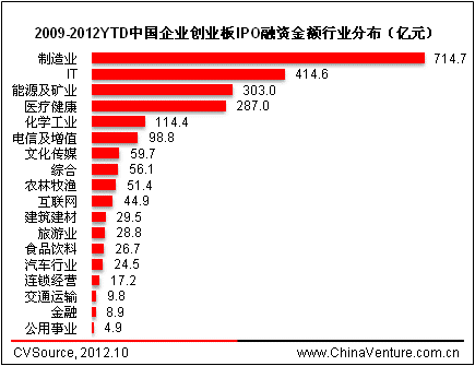 图5 2009-2012YTD中国企业创业板IPO融资金额行业分布(亿元)