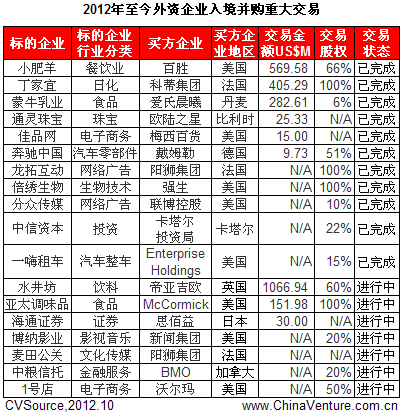 表4 2012年至今外资企业入境并购重大交易