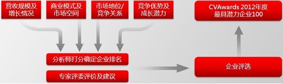 基于2012年至今行业运行数据及投资趋势分析,ChinaVenture投中集团秉承专业的研究方法、依托旗下数据库产品CVSource等数据源,并结合VC/PE机构投资人组成的评委团打分评价,推出“CVAwards 2012年度最具潜力企业100”榜单,并于2012年10月31日在北京发布。