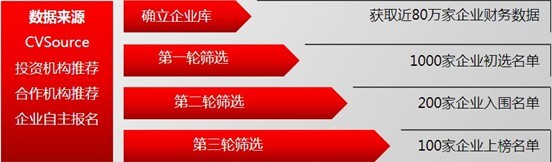 ChinaVenture分析师团队从CVSource 数据库中超过80万家企业的财务数据出发,通过三轮严格筛选,最终确定100家上榜企业名单。