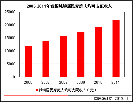 图1 2006-2011年我国城镇居民家庭人均可支配收入