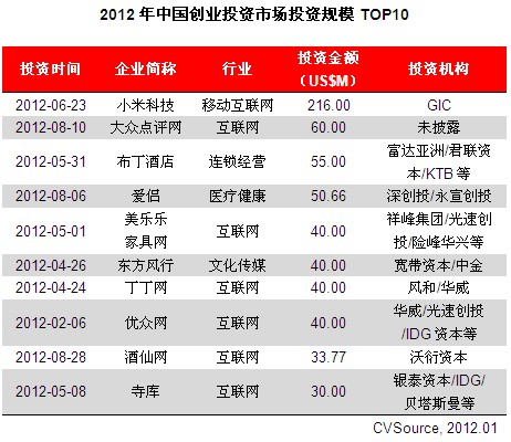投中集团:2012中国创投规模大收缩 寒冬推动企业估值回归