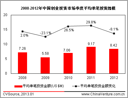 图2 2008-2012年中国创投市场平均单笔投资规模