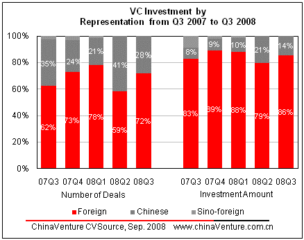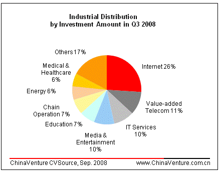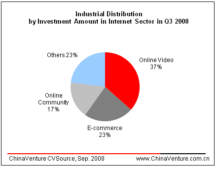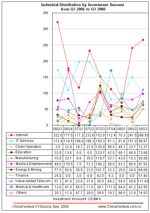 VC investment in the Internet sector features diversified amount in Q3 2008.