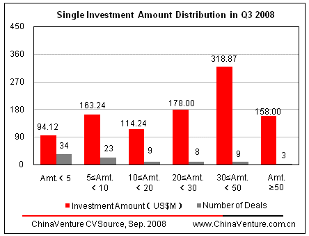 1. Analysis by Investment Scale in China’s VC Market in Q3 2008