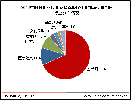 图6 2013年04月中国创业投资及私募股权投资金额行业分布情况