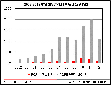 图1 2002-2012年我国VC/PE投资项目数量情况