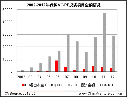 图2 2002-2012年我国VC/PE投资项目金额情况