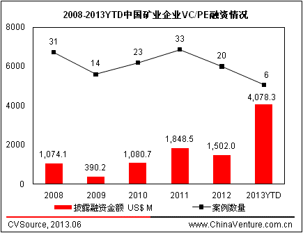 图1 2008-2013YTD中国矿业企业VC/PE融资情况