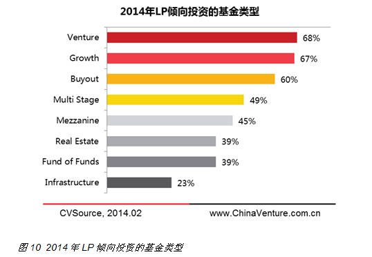 在投资基金的选择上, Venture基金和Growth基金依然是LP的主要选择,而一个值得关注的现象则是LP对并购基金的兴趣大增。2013年中国各行业并购掀起热潮,行业领先机构也均有意涉足并购基金,LP的投资需求将在一定程度上推动中国并购基金的加速发展。