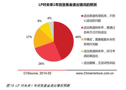 l 46%受访LP认为退出渠道有望拓宽,不担心退出的问题;27%受访者认为退出渠道将收窄,需通过各种方式尽快退出