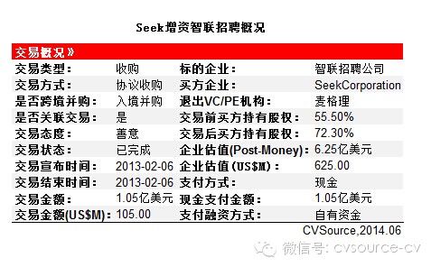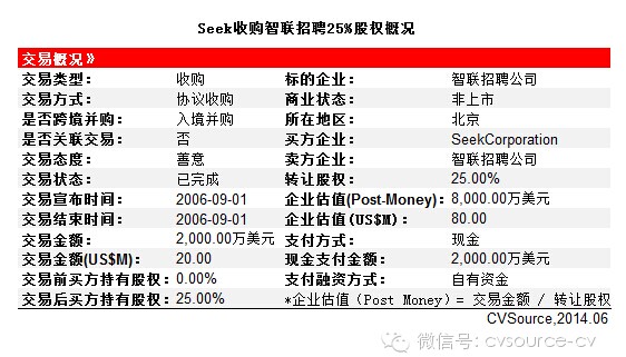 2006年9月,Seek投资智联招聘2,000万美元,占25%股权。