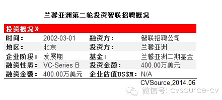 2002年3月,兰馨亚洲投资智联招聘400万美元。
