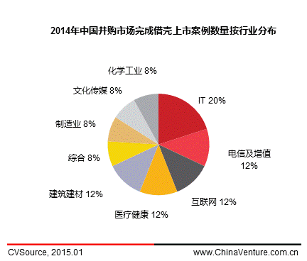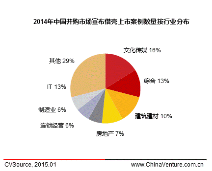 图3 2014年中国并购市场宣布借壳上市案例数量按行业分布