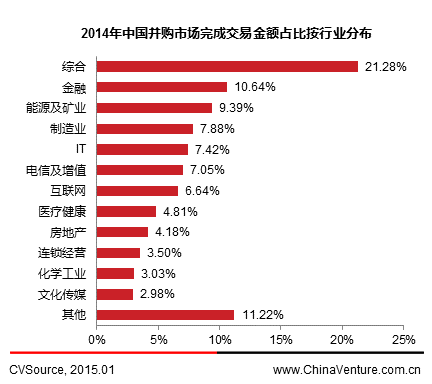 图6 2014年中国并购市场完成交易金额占比按行业分布