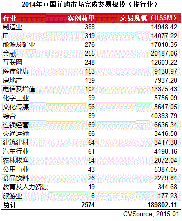 2014年中国并购交易市场规模再创新高
