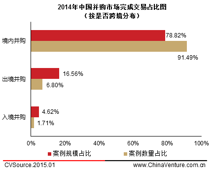 表6 2014年中国并购市场完成交易规模(按是否跨境)