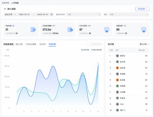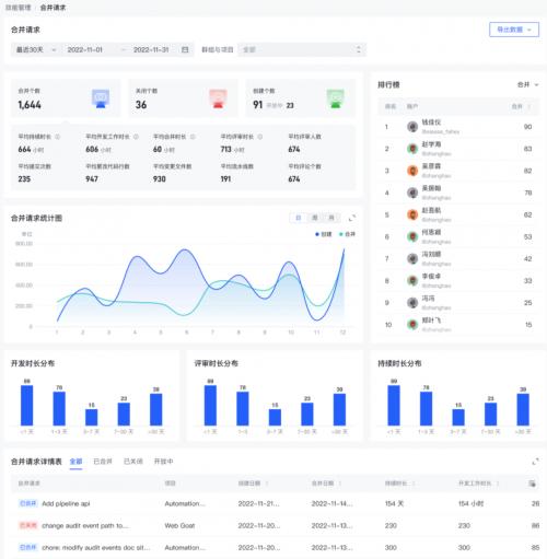 研发团队负责人总是觉得资源不够用,难以支持业务发展。极狐星通过完成议题数、合并请求数、代码行数、提交次数的指标统计,直观展示团队及人员效能。