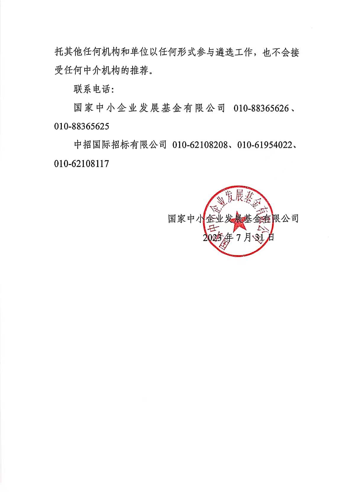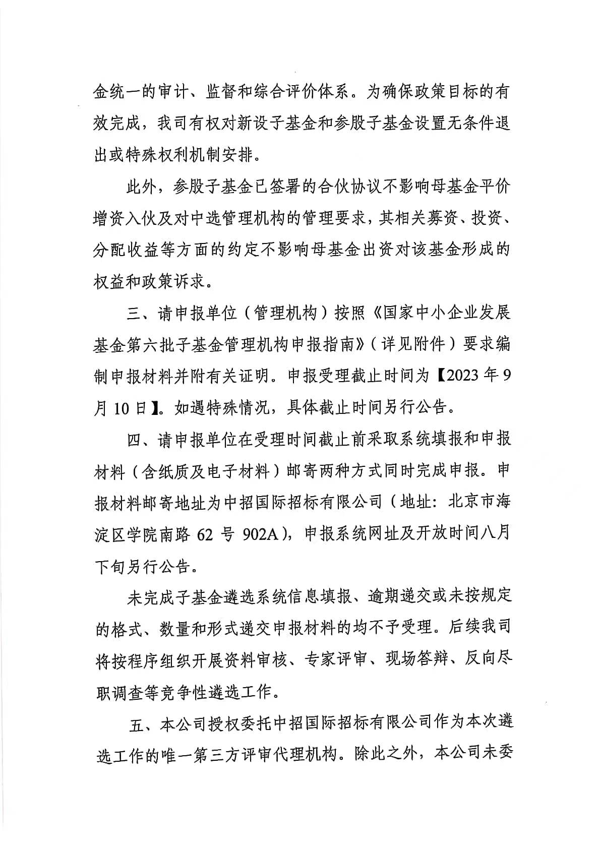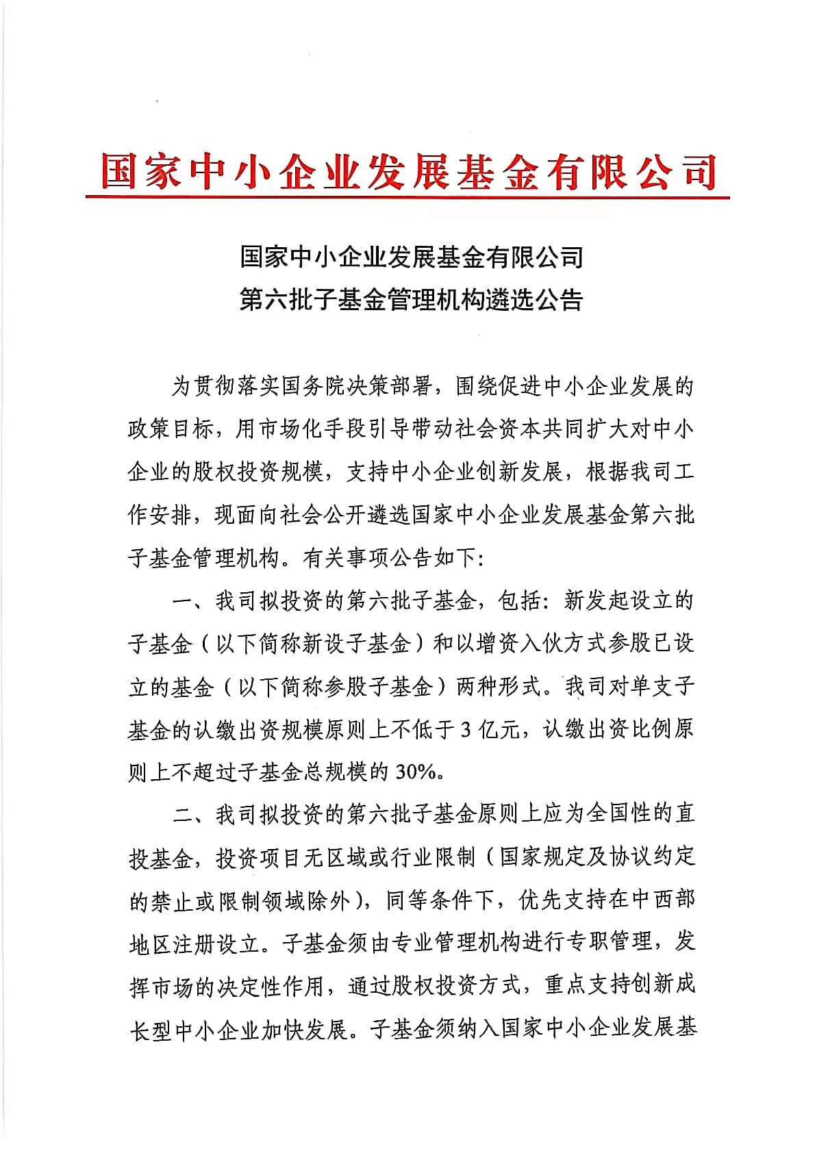 国家中小企业发展基金有限公司第六批子基金管理机构遴选公告
