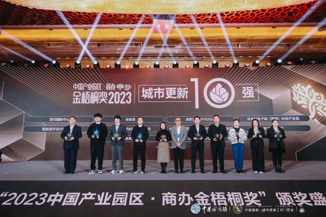获得“2023中国产业园区·商办金梧桐奖”城市更新10强的是(排名不分先后):国际城市设计产业中心、首创·新大都金融科技产业园、中关村京西人工智能科技园、京印国际中心、中关村电子城(昆明)科技产业园、成都交子OFFICEZIP、用友产业园(北京)、北京艺术金融国际创新园、首开LONG街、砖窑里。