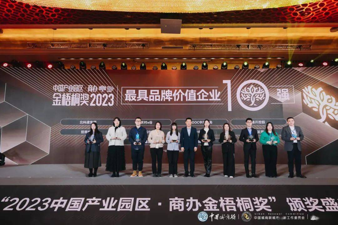 获得“2023中国产业园区·商办金梧桐奖”最具品牌价值企业的是(排名不分先后):招商蛇口产业园区、北科建集团、COOC中海商务、昌发展、中电光谷、中关村e谷、清控科创、海开控股、德必集团、中南高科。