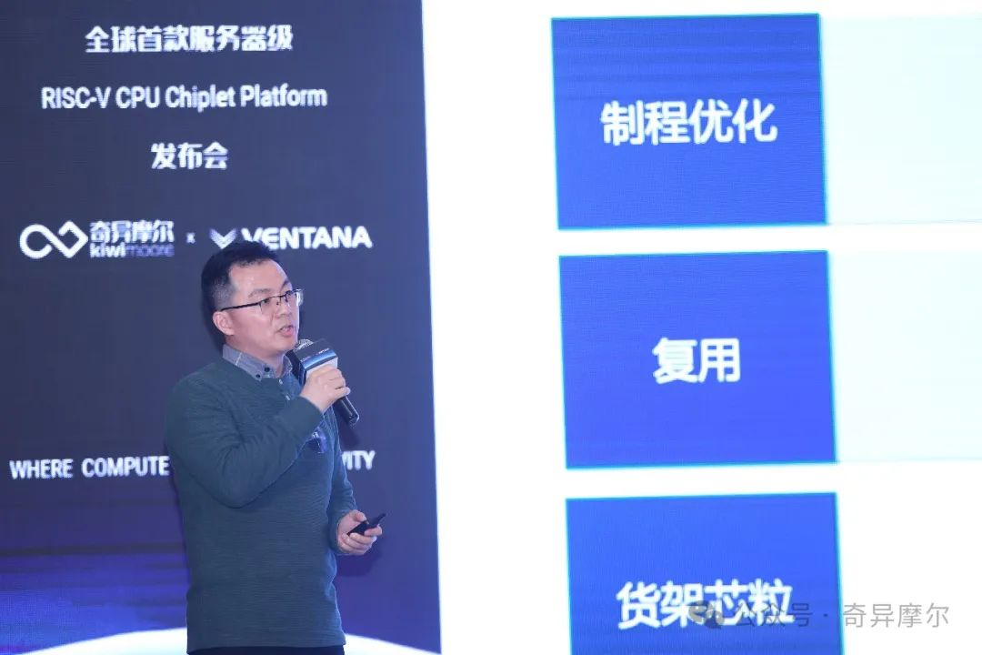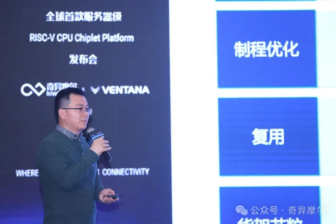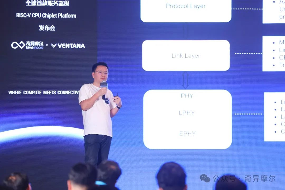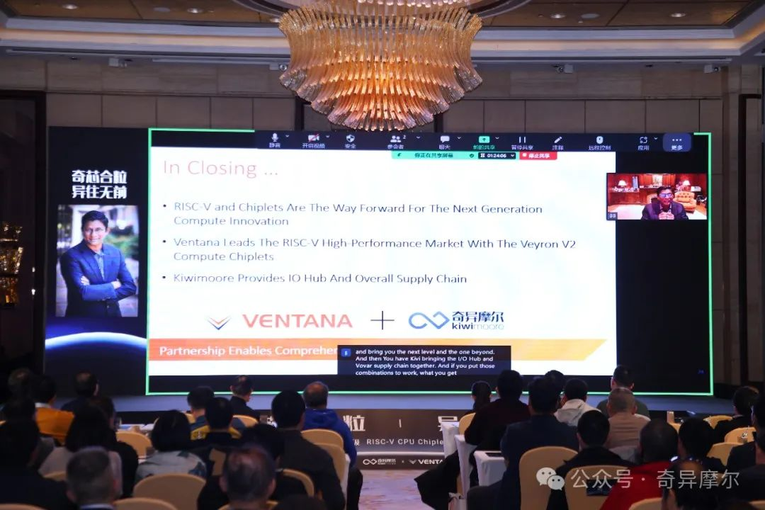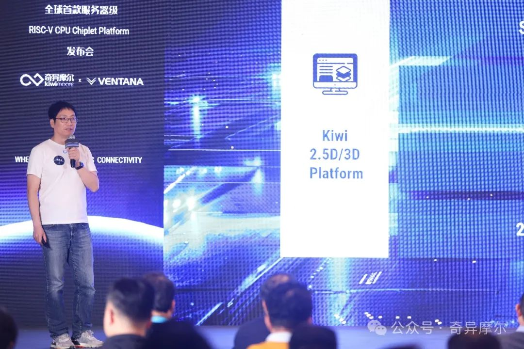 发布会上,奇异摩尔及高性能RISC-V领域的领导者 Ventana Micro公开展示了基于Kiwi IO Die的应用方案。双方以远低于传统 SoC 构建的时间和成本创建了一款高性能数据中心级RISC-V处理器,并就此打造了RISC-V CPU Chiplet Platform,实现了RISC-V与互联技术组合的跨越性一步。