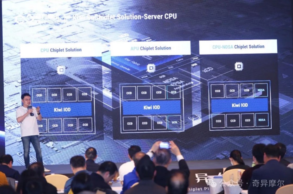 祝俊东介绍:Kiwi SoChiplet Platform在支持芯粒数量、CPU Core、Die2Die带宽、Memory 带宽、Ext Interface 等关键指标方面,均达到国际领先水平。基于该平台,客户可以轻松构建多样化的产品线,实现连接计算和存储/连接的分离,以相对低的成本使产品及性能持续保持国际领先水准。
