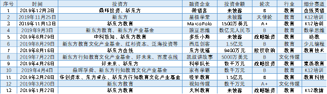 (2019年新东方投资情况 来源:企查查 投中CV source)