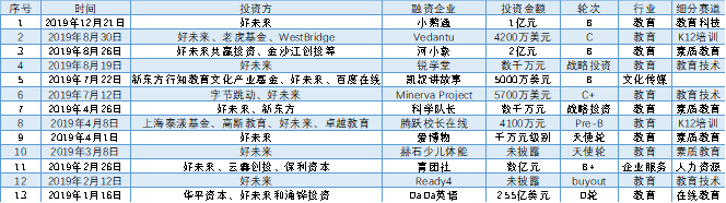 寒冬阴影覆盖之下,多笔大额融资事件释放积极信号。DaDa、晓羊教育、河小象、豌豆思维、小鹅通陆续完成亿元以上融资,而这些大额融资的背后,有两个耳熟能详的教育巨头——新东方与好未来。新东方、好未来近几年一直通过投资拓展疆土,资本寒冬持续下的2019年,新东方、好未来又投了哪些企业?折射的投资逻辑又是什么?
