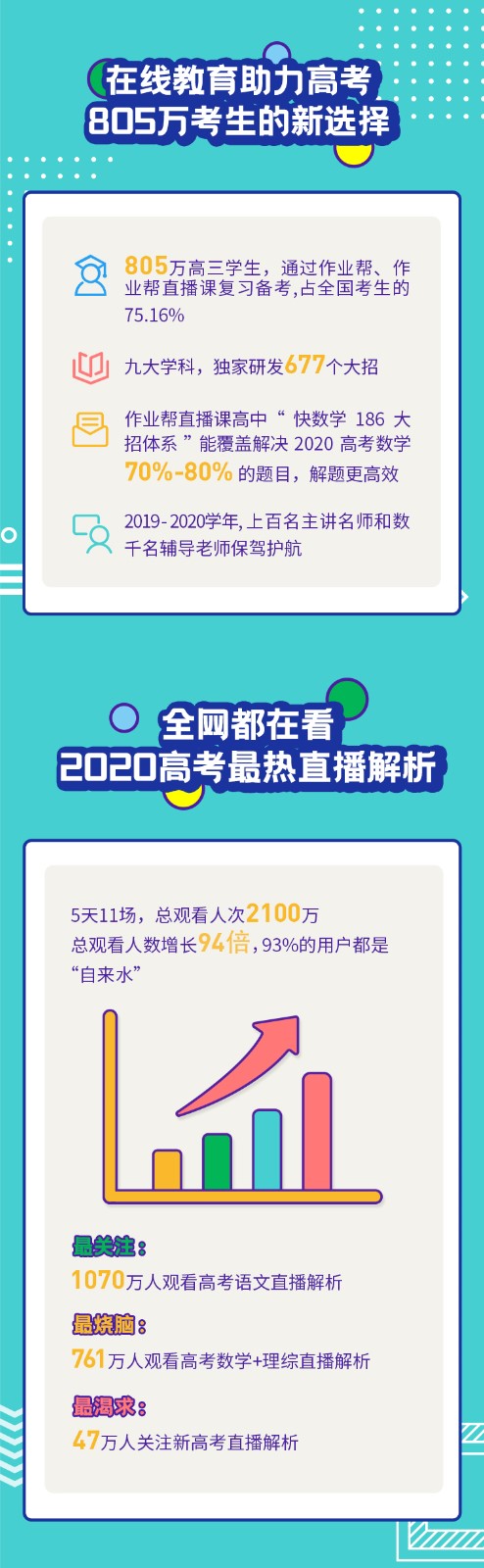 这意味着以作业帮为代表的在线教育平台,已经成为中国学生备战高考的新选择,是帮助学生线上学习的“新基建”。