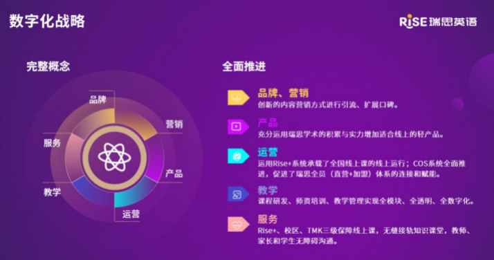 “业务的数字化,首先要有强大的管理平台支撑和赋能。”王励弘表示,瑞思首先做的,就是在1月启动自有的Rise+线上服务系统,并升级为可面向全国的直播课程平台,2月开始向全国学生开放免费试听。