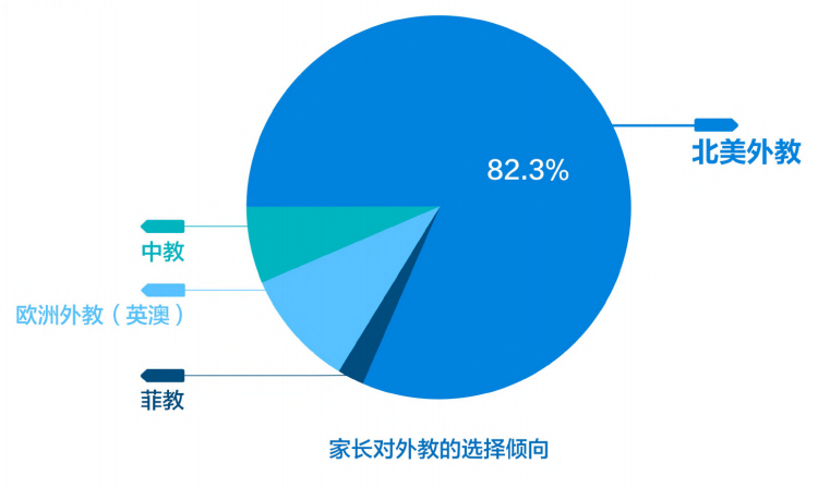 但不得不提的是,目前中国市场对于菲教的接受度还远不够成熟。根据中科院大数据挖掘与知识管理重点实验室7月发布的《2020年中国在线青少儿英语教育市场报告》,调研显示,在外教选择方面,82.3%的家长更愿意选择并信任北美外教,欧洲外教、中教成为第二、第三选择,愿意选择菲教的比例最低。