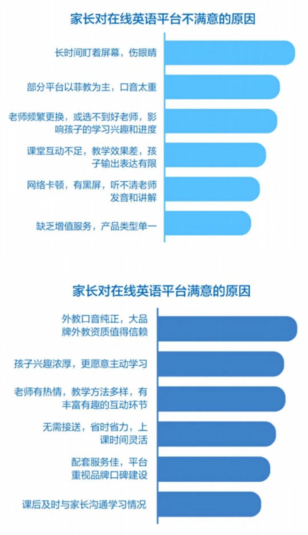 该报告同时指出,“菲教口音重”成为家长对在线教育平台抱怨、投诉的第二大原因。