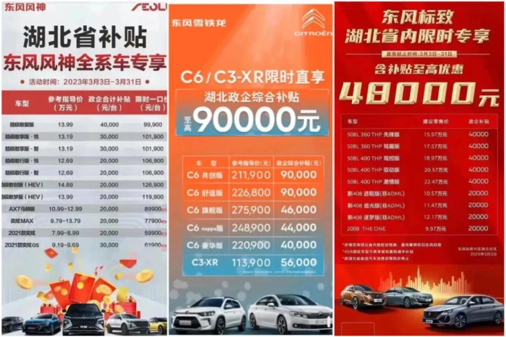 2023年东风部分车系开启疯狂降价模式