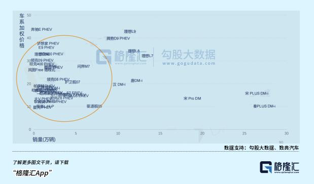 再看去年大放异彩的插电车型,除比亚迪的DM-i系列以及理想外,大部分车的销量均不足5万辆,只有问界M7有突围趋势。