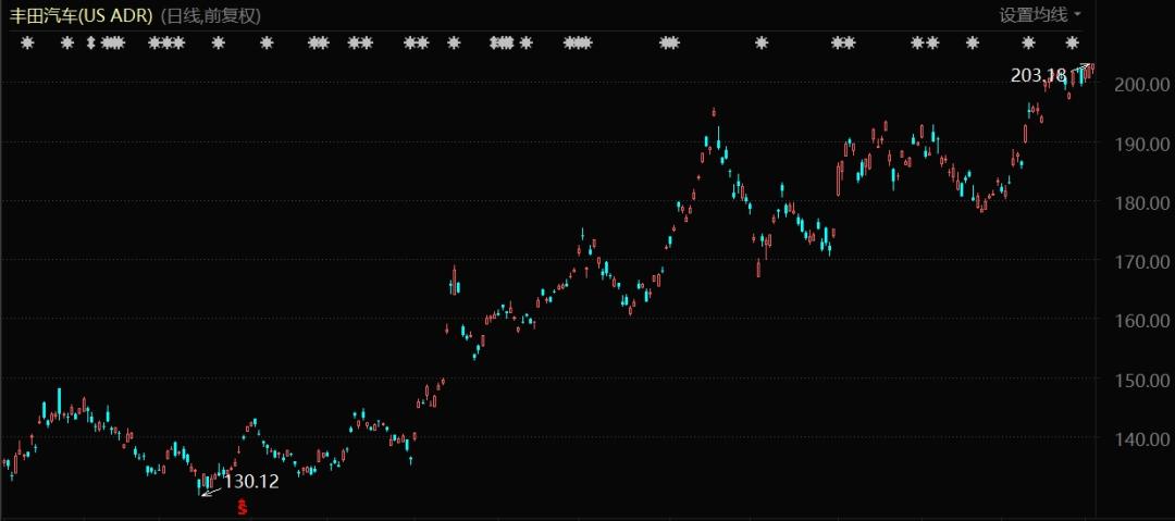 良好的业绩支撑了股价上涨,当天丰田汽车美股股价大涨近8%,报收于218.86美元/股,创下历史新高。实际上丰田汽车近一年的股价都在持续走高,期间涨幅高达55.24%,走势远比特斯拉稳定,这是全球汽车市场纷繁复杂环境的一种集中体现。