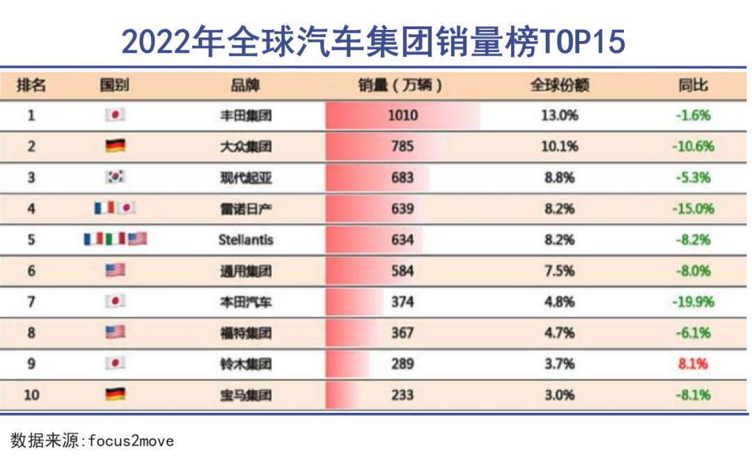 成为世界级汽车制造商后,节能高效一直丰田汽车最重要的标签。随着俄乌战争的爆发与胶着,石油供应紧张、价格持续高位的局势重演,显然对以省油闻名的丰田汽车又是一大利好。2022年,丰田汽车全球销量达到1050万辆,连续第三年打败大众,成为全球销量最高的汽车制造商。