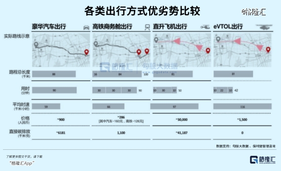 从不同交通工具的成本比较来看,目前eVTOL有望成为豪华专车、码头游轮,直升机的竞争选择,短期内更适合应用于旅游观光、医疗运输等场景。