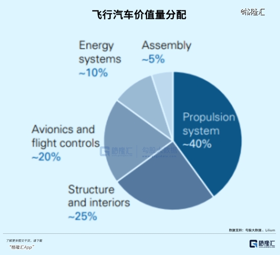 上游eVTOL的核心系统主要分为电池、动力系统、电子设备和飞控系统以及机体4大类,成本比例分别为10%、40%、20%以及25%。