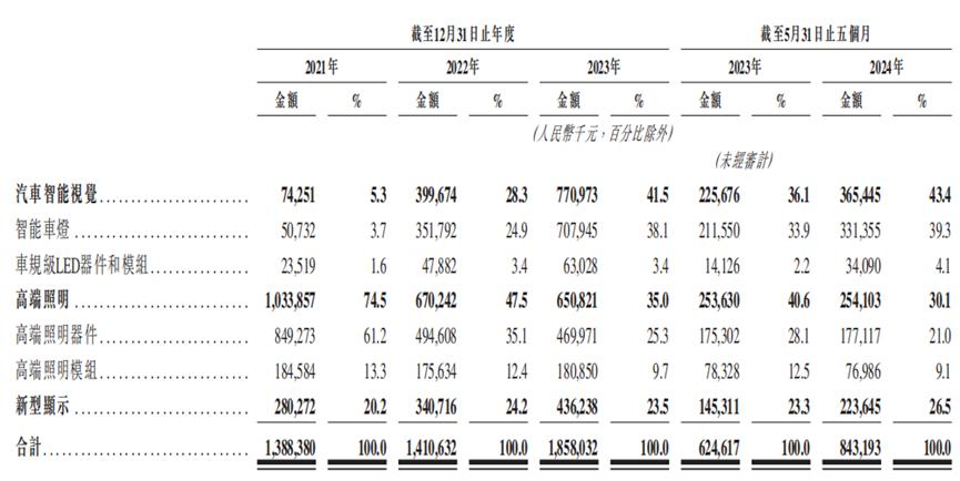 报告期内公司的收入大幅增长,主要依靠汽车智能视觉及新型显示收入增加,而高端照明收入有所减少。
