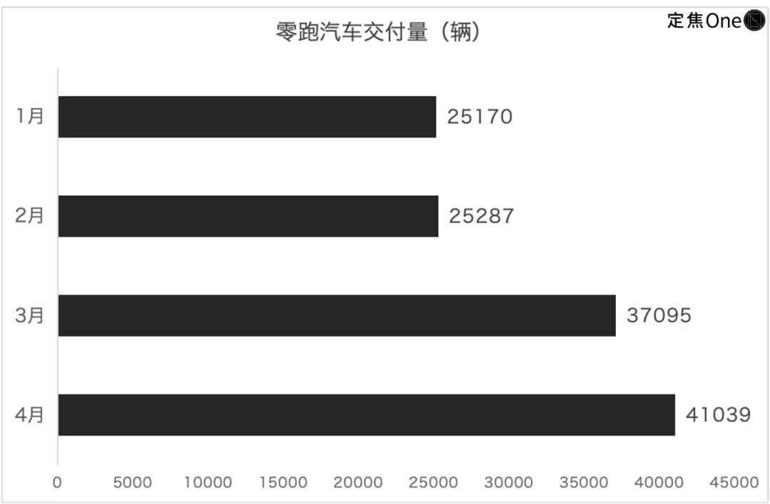 零跑4月销量的四分之一来自刚上市的B10车型。据零跑汽车创始人、董事长兼CEO朱江明透露,今年4月10日上市的零跑B10(预售价10.98万元起),已交付1万辆。