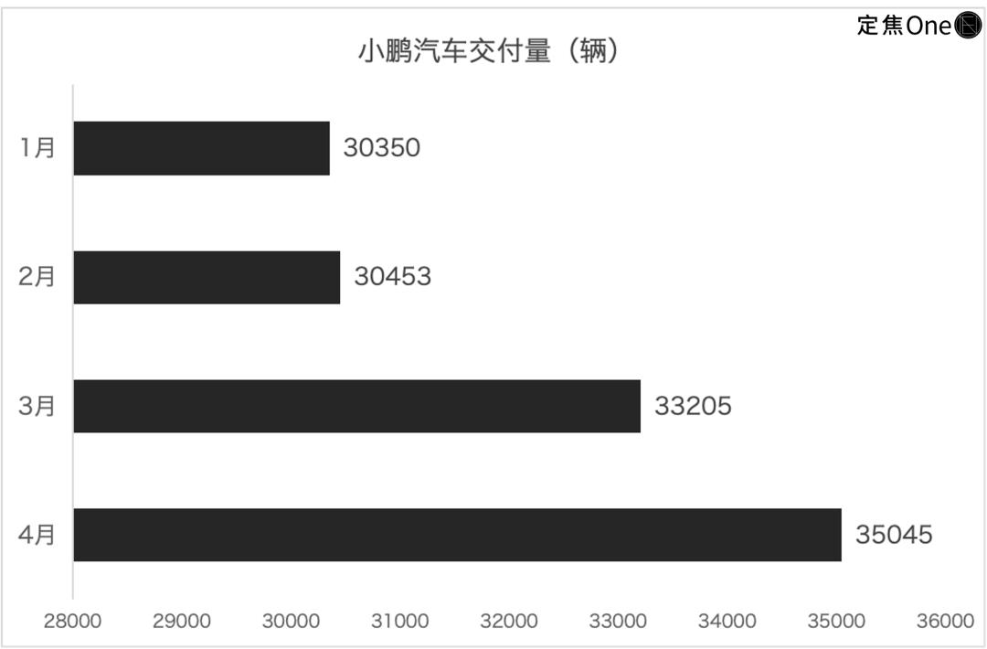 在零跑逆袭之前,小鹏今年前两个月抢尽风头,上演了“触底反弹”的励志故事。4月,小鹏交付3.5万辆,同比涨2.7倍,增速第一但被零跑甩开6000辆,环比也有小幅增长,“主要是交付提速和新车效应”,新能源汽车渠道人士总结。