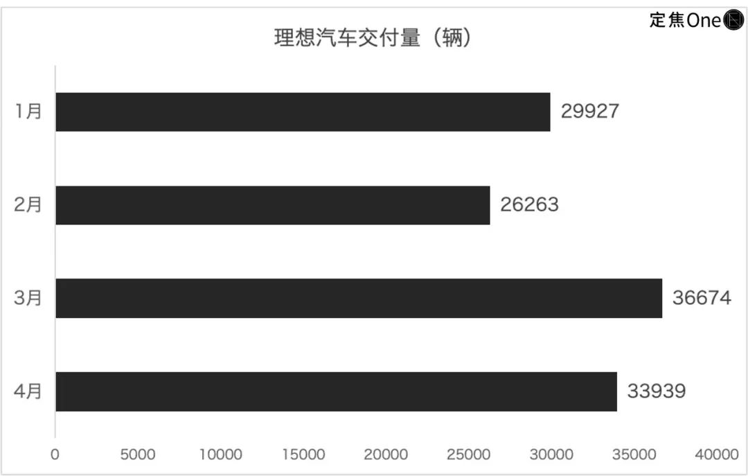 理想最终以33939辆的交付量交出了“同比增32%、环比降8%”的成绩单,排名跌至第三。