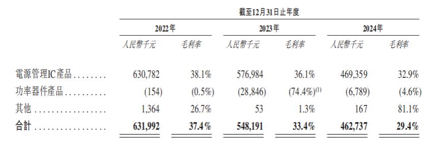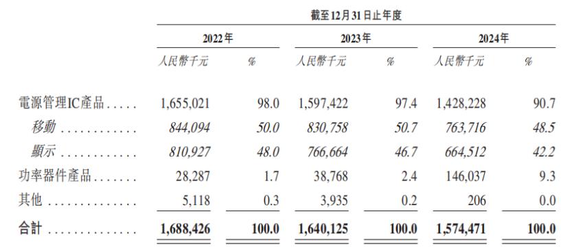 按产品来划分,2022年、2023年、2024年(报告期),电源管理IC产品收入分别为16.55亿元、15.97亿元、14.28亿元,占比超过了90%。