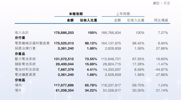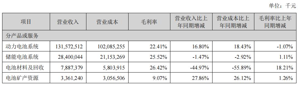 电池矿产资源板块营收为33.61亿元,同比增长27.86%,毛利率为9.07%,这个板块的目的主要是对冲原材料价格波动带来的风险。
